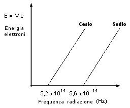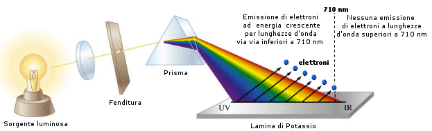 Gli elettroni cominciano ad uscire solo quando il metallo viene investito da una radiazione avente una ben precisa lunghezza d'onda (frequenza di soglia). Utilizzando luce di maggior lunghezza d'onda, anche se molto intensa, non si ottiene alcun effetto.