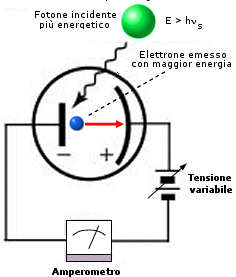 Utilizzando luce di lunghezza d'onda inferiore a quella di soglia si ottiene la fuoriuscita di elettroni più energetici.