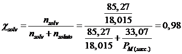 Sapendo che l'acqua congela a 273,15K e che la soluzione di saccarosio congela a 273,15-2,02=271,13K, possiamo calcolare la frazione molare del solvente