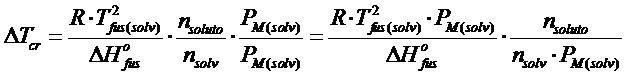 Se infatti consideriamo la tensione di vapore di una soluzione che contenga un soluto poco volatile e la tensione di vapore del solvente puro in relazione alle rispettive temperature di solidificazione, possiamo scrivere
