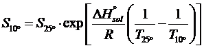 Combinando l'equazione di Clausius-Clapeyron con la Legge di Henry è possibile correlare la solubilità S dei gas alla Temperatura e all'entalpia di solubilizzazione DHsol