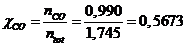 Poiché per ogni mole di CO2 che reagisce se ne formano 2 di CO, se all'equilibrio sono presenti 0,990 mol di CO, devono essere scomparse 0,990/2 = 0,495 mol CO2. Ovviamente le moli di diossido di carbonio presenti all'equilibrio si calcolano facendo la differenza tra le moli iniziali e quelle scomparse, quindi 1,25 - 0,495 = 0,755 mol