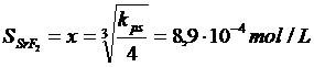 Se indichiamo con x il numero di moli di SrF2 che si sciolgono e si dissociano in x moli di ioni Sr2+ e 2x moli di ioni F-, ed osserviamo che x rappresenta anche la solubilità del sale, possiamo scrivere