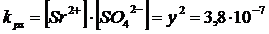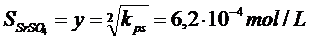 Se ora indichiamo con y il numero di mol/L di SrSO4 che si sciolgono (e quindi y = S) e si dissociano in y ioni Sr2+ e y ioni SO42-, possiamo scrivere