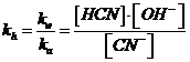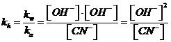 Ora, osservando che l'equilibrio di idrolisi genera uno ione OH- per ogni molecola di acido indissociato HCN, potremo scrivere