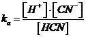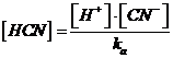 dalla relazione di equilibrio dell'acido cianidrico esplicitiamo la concentrazione dell'acido indissociato HCN