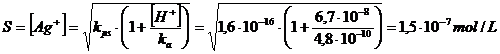 quella normale per il calcolo della solubilità In questo caso la [H+] non dovrebbe essere molto distante da 10-7. Il prodotto di solubilità è infatti molto piccolo e si liberano quindi pochi ioni CN-, i quali danno un'idrolisi non molto elevata (kh = 2,1 10-5). Il prodotto (kh x kps) = 3,4 10-21 è minore di 10-18 e quindi la variazione di pH è trascurabile.