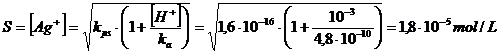Calcoliamo la solubilità ed il pH di una soluzione di AgCN, sapendo che la sua kps =1,6 10-16 e la ka dell'acido cianidrico HCN è 4,8 10-10. Calcoliamo inoltre la solubilità del medesimo sale in una soluzione tamponata a pH = 3.