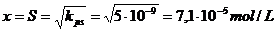 Calcoliamo infine la solubilità in una soluzione tamponata a pH = 5. La concentrazione degli ioni H+ è pari a 10-5 mol/L e dunque la solubilità sarà