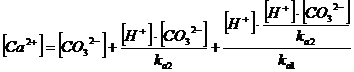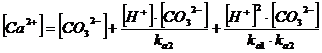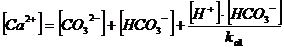 Eseguiamo il bilancio di massa. Per ogni molecola di CaCO3 che si dissocia, si liberano uno ione Ca2+ ed uno ione CO32-. Ma parte digli ioni CO32- si trasformano in HCO3- e H2CO3, per cui la loro somma (CO32-. + HCO3- + H2CO3) dovrà essere uguale al numero totale di ioni Ca2+ presenti in soluzione.