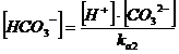 dalla relazione di equilibrio dell'anione idrogenocarbonato esplicitiamone la concentrazione