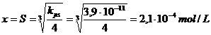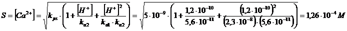 Calcoliamo infine la solubilità in una soluzione tamponata a pH = 3. La concentrazione degli ioni H+ è pari a 10-3 mol/L e dunque la solubilità sarà