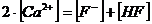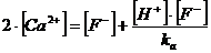 Eseguiamo il bilancio di massa. Per ogni molecola di CaF2 che si dissocia, si formano uno ione Ca2+ e due ioni F-. Ma parte digli ioni F- si trasformano in HF, per cui la loro somma (F- + HF) dovrà essere uguale al doppio del numero totale di ioni Ca2+ presenti in soluzione.