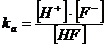 dalla relazione di equilibrio dell'acido fluoridrico esplicitiamo la concentrazione dell'acido indissociato HF