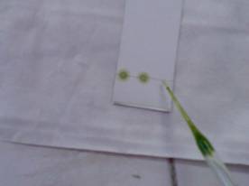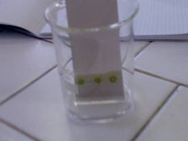 DESCRIZIONE ESPERIENZA: Nella prima esperienza di laboratorio ci è stato possibile osservare alcune tecniche di separazione: estrazione, cromatografia, distillazione e centrifuga. All' inizio la professoressa ci ha diviso in gruppi ed ogni gruppo ha sminuzzato alcune foglie di spinaci, le quali sono state messe successivamente in un mortaio con dell' alcool etilico ( utilizzato come eluente) e schiacciate per ottenerne la clorofilla. A questo punto ha inizio il processo di cromatografia. Attraverso una pipetta abbiamo prelevato alcune goccioline di clorofilla e alcool dal mortaio e le abbiamo appoggiate su un pezzetto di carta al gel di silice fissata su una lamina di alluminio che è stata poi messa in un beker contenente acetone.