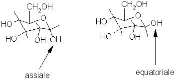 gruppo ossidrilico legato a C1 è equatoriale in β e assiale in