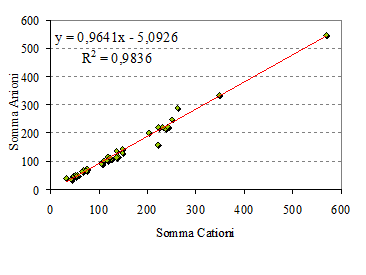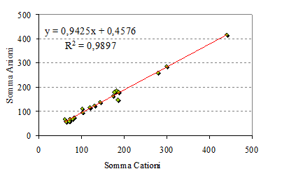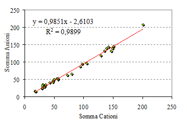 I dati analitici per i macrocostituenti sono stati validati mediante la verifica del bilancio ionico e del confronto fra conducibilità misurata e calcolata.