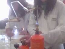 Ho acceso i becchi Bunsen e ho notato nella prima provetta contenente il permanganato delle particelle che andavano a introdursi nel tubo di sviluppo e poi andare a finire nelle seconda provetta con il rame che intanto stava mutando; ha cambiato colore in grigio.
