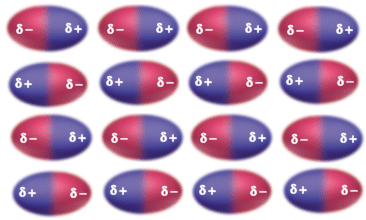 Le molecole polari, o dipoli permanenti (molecole dotate di un momento di dipolo ), esercitano naturalmente una reciproca attrazione elettrostatica. Quando le molecole dipolari si avvicinano tendono infatti a disporsi con i poli di carica opposta l'uno di fronte all'altro, al fine di rendere minima l'energia potenziale del sistema (configurazione di maggior stabilità). In tal modo si verifica un'attrazione elettrostatica tra i poli opposti, detta interazione dipolo-dipolo.