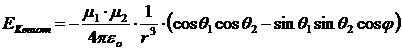 Per due dipoli liberi di ruotare (liquido o aeriforme) di momento 1ed2 a distanza r l'energia di Keesom è