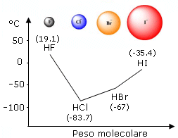Tale previsione è verificabile osservando ad esempio i composti dell'idrogeno con gli elementi del VII gruppo A, dove il punto di ebollizione diminuisce costantemente al diminuire del peso molecolare, con la notevole eccezione dell'acido fluoridrico.