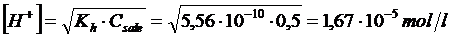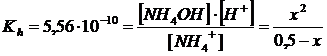 x = [H+]= [NH4OH] = 1,67.10-5 mol/L pH = 4,8
