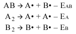 Confrontiamo l'energia di legame della molecola eteropolare AB con le energie di legame delle molecole omopolari A2 e B2. Queste energie si riferiscono alle reazioni di dissociazione indicate di seguito: