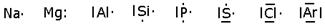 Secondo tale metodo i 2 + 6 elettroni dei primi due sottolivelli (1 orbitale s e 3 orbitali p) del livello più esterno vengono rappresentati come punti o coppie di punti disposte ai quattro lati del simbolo chimico dell'elemento. Ogni lato rappresenta un orbitale e può contenere al massimo 2 elettroni. Per maggior chiarezza diamo la configurazione di Lewis degli elementi appartenenti al 3° periodo.