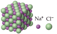 In realtà non esiste una singola molecola di Cloruro di Sodio, come abitualmente e convenzionalmente si scrive. Infatti l'attrazione tra cariche di segno opposto, come sono cationi e anioni, non si sviluppa solo in un'unica direzione, ma agisce uniformemente in tutte le direzioni (con simmetria sferica). Uno ione Na+ risulta infatti circondato da 6 ioni Cl- e viceversa., formando uno sconfinato reticolato cubico, in cui ioni di carica opposta si alternano ordinatamente nelle tre direzioni dello spazio. Tale disposizione ordinata è detta cristallina, poichè genera macroscopicamente un cristallo che conserva la geometria della sottostante struttura atomica.