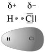 Ancora una volta possiamo rappresentarci la situazione immaginando che la nuvola elettronica negativa sia deformata, più densa sopra l'elemento più elettronegativo.