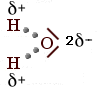 Si formano due legami covalenti. Ma le nuvole elettroniche ad essi associate vengono in questo caso attirate con maggior forza dal nucleo dell'ossigeno (più elettronegativo), il quale contiene ben 8 protoni contro il solo protone che costituisce ciascun nucleo di Idrogeno.