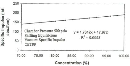 Figura 1.1: L'impulso specifico nel vuoto del perossido d'idrogeno al variare della concentrazione. (da
