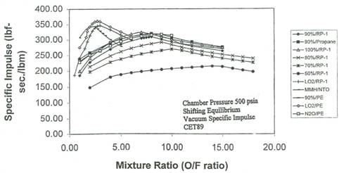 . Elevati rapporti ossidante/combustibile. L'impulso specifico del perossido d'idrogeno, quan- do utilizzato come ossidante, presenta tipicamente un massimo per alti rapporti ossi- dante/combustibile. Questo aspetto, insieme all'elevata densità del perossido d'idrogeno, permette di realizzare sistemi propulsivi più compatti.
