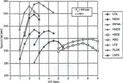 . Potente ossidante liquido. Il perossido d'idrogeno ha delle prestazioni paragonabili a quelli di altri ossidanti liquidi, come il tetrossido d'azoto, l'acido nitrico e persino l'ossigeno liquido. Nelle figure 1.3 e 1.4 è proposto il confronto tra il perossido d'idrogeno e gli altri ossidanti nelle configurazioni, rispettivamente, bipropellente ed ibrida.
