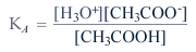 a. Poiché per ogni molecola di acido acetico dissociata vi è uno ione H3O+ e uno ione CH3COO-, queste due specie sono quantitativamente identiche: ovvero, [H3O+] = [CH3COO-].