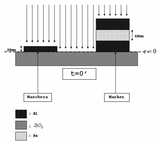 che è circa lo spessore di Al che è necessario rimuovere dai markers per poter liberare lo strato di Au.