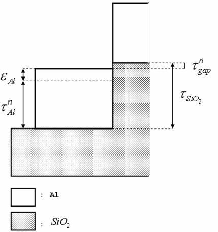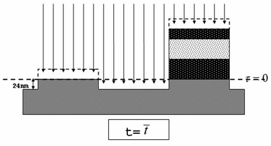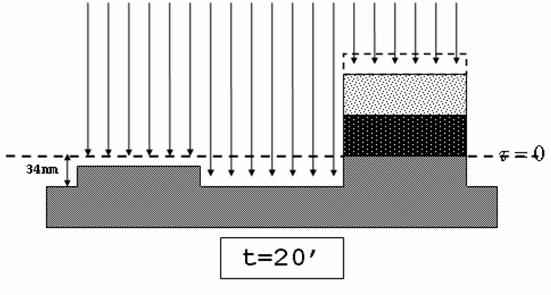 L'adozione di tale strategia è stata imposta dalla necessità di definire gradini della minore dimensione: infatti, se invece di produrre un gradino si effettuasse uno scavo della stessa larghezza, a causa delle sue ridotte dimensioni il fenomeno della rideposizione renderebbe le sue pareti inclinate al punto che sarebbe irrealizzabile l'interruzione del film di Al da evaporare al passo successivo (Fig. 2).