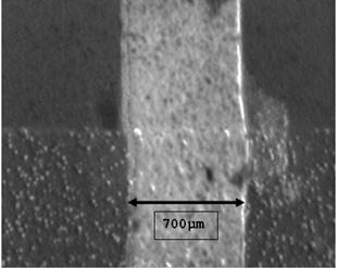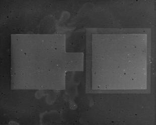 Fig. 8: Fallimento del dispositivo a causa della scarsa risoluzione del processo di litografia impiegato: l'immagine fa riferimento ad un dispositivo di test (Dev-I) che sarà descritto nel prossimo paragrafo.
