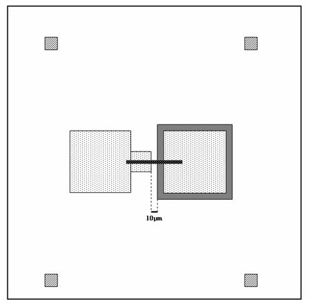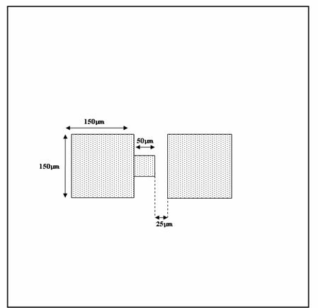 Il campione subisce quindi il primo passo di litografia EBL: dopo la stesura del BILAYER 6%, si scrive su di esso ad ingrandimento 40X la seguente geometria:
