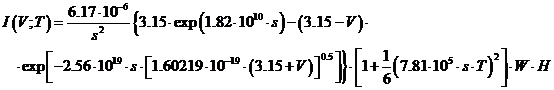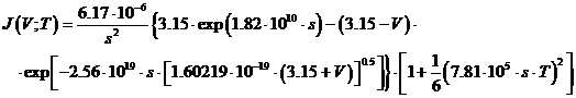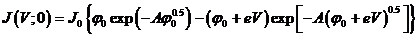 La barriera tra gli elettrodi viene assunta di forma rettangolare: la relazione tra densità di corrente e tensione ad una generica temperatura per una barriera rettangolare viene di nuovo riportata per maggiore chiarezza: