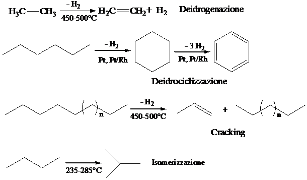 1) Cracking e reforming Processi industriali, termici e/o catalitici, che consentono di trasformare paraffine in altri idrocarburi più pregiati.