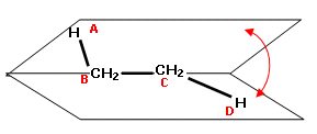 Consideriamo in particolare le 2 conformazioni sfalsate (A C) e le 2 conformazioni eclissate (B D) mostrate di seguito