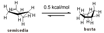 In effetti la conformazione a barca non si trova, come vedremo, ad un minimo di energia, ma ad un massimo Non andrebbe pertanto considerata un isomero conformazionale, ma una forma di transizione tra due minimi in conformazione a treccia.