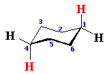 Inoltre gli atomi di carbonio posti alle due opposte estremità (C1 e C4) dell'anello del cicloesano presentano la massima separazione evitando qualsiasi ingombro sterico.