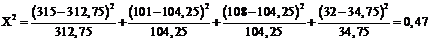 Dunque, se ora confrontiamo il valore di che abbiamo calcolato nell'esempio precedente ( = 0,47) con il valore critico per il 5% di probabilità e per 3 gradi di libertà (7,81) troviamo che il calcolato è inferiore al valore critico (0,47 < 7,81) . Possiamo accettare l'ipotesi nulla ed affermare che le frequenze osservate rappresentano una distribuzione 9:3:3:1 a meno di fluttuazioni da ritenersi casuali.