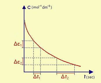 La velocità di reazione v può essere determinata dalla variazione della quantità di un componente nell'unità di tempo: normalmente ci si riferisce alla concentrazione C