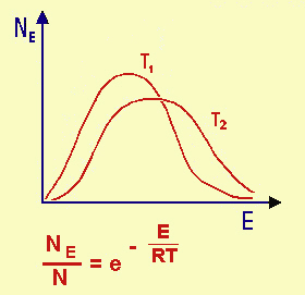 E' facile da intuire che la velocità della reazione è proporzionale, in qualche modo, al numero di molecole che hanno energia sufficiente per superare la barriera di potenziale; ogni molecola possiede una energia che non è necessariamente eguale a quella delle sue simili se non a livello statistico: esisterà cioè una distribuzione della E (e perciò della velocità) tra molecole dello stesso tipo, distribuzione espressa dalla legge di Maxwell-Boltzmann (Maxwell, Scozia, 1831-1879), Boltzmann (Austria, 1844-1906).