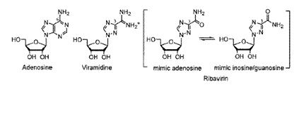 Figura 19 Struttura dell'adenosina e dei suoi analoghi viramidina e ribavirina (Wu et al , 2005)