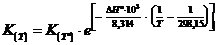 In modo analogo si calcola la costante di equilibrio K(T) alla temperatura T diversa da 298,15 (T°). Dividendo ambo i membri della 2) per -RT si ottiene