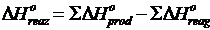 Dai valori tabulati a 25°C delle funzioni termodinamiche ricaviamo i DH° delle specie chimiche. Il DH° della reazione sarà